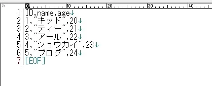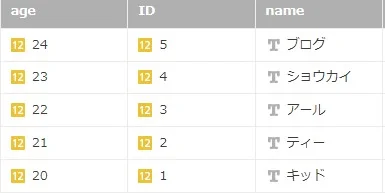 ID name ageに””を付けないのは、こちらはフィールド名になるためです。
